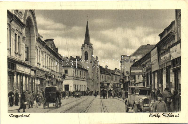 Leírás: Nagyvárad, Oradea; üzletek, autók / shops, automobiles (EB)