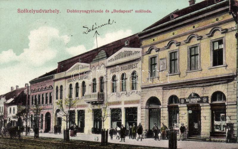Leírás: Székelyudvarhely, Odorheiu Secuiesc; Dohánynagytőzsde, Budapest szálloda; Sterba Ödön kiadása / hotel (ázott / wet damage)