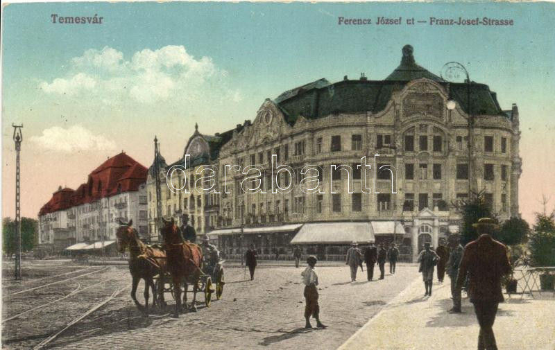 Temesvár, Timisoara; Ferencz József út / street (vágott / cut) https://www.darabanth.com/hu/265-Gyorsarveres/265.0/Kepeslapok/Erdely~300027/Temesvar-Timisoara-Ferencz-Jozsef-ut-street-vagott-cut~II1327516