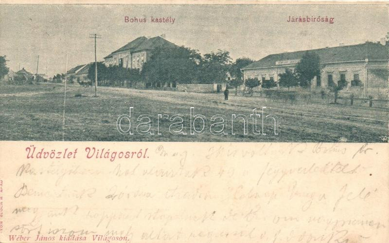 Leírás: Világos, Siria; Bohus kastély, Járásbíróság, Wéber János kiadása / castle, court (EK)
