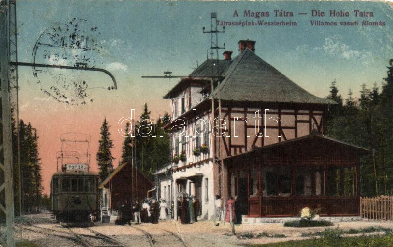 Leírás: Tátraszéplak, Weszterheim, Villamos vasúti állomás Poprád felé közlekedő szerelvénnyel / tram station (EB)