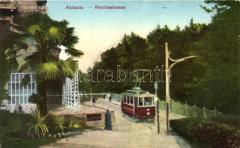 Leírás: Abbazia, Reichsstrasse, Verlag A. Dietrich / street with tramway