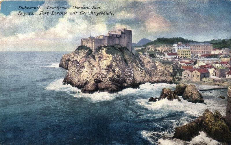 Dubrovnik, Ragusa; Fort Lorenzo mit Gerichtsgebäude / courthouse https://www.darabanth.com/hu/265-Gyorsarveres/265.0/Kepeslapok/Horvatorszag-Delvidek~300034/Dubrovnik-Ragusa-Fort-Lorenzo-mit-Gerichtsgebaude-courthouse~II1325366