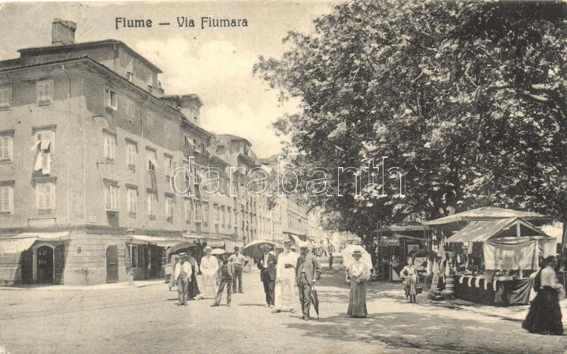 Fiume, Via Fiumara / market place https://www.darabanth.com/hu/265-Gyorsarveres/265.0/Kepeslapok/Horvatorszag-Delvidek~300034/Fiume-Via-Fiumara-market-place~II1328845