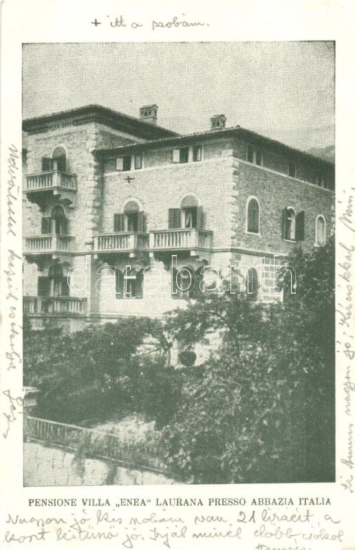 Lovran, Laurana presso Abbazia; Pensione Villa Enea / hotel https://www.darabanth.com/hu/265-Gyorsarveres/265.0/Kepeslapok/Horvatorszag-Delvidek~300034/Lovran-Laurana-presso-Abbazia-Pensione-Villa-Enea-hotel~II1329919