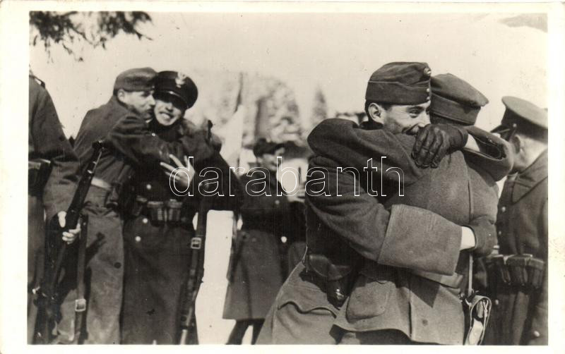 Leírás: 1939 Uzsok, Uzhok; Magyar-Lengyel baráti találkozás a visszafoglalt ezeréves határon / Hungarian-Polish meeting on the historical border
