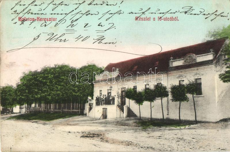 Leírás: Balatonkeresztúr, Főutca, Fürst Ignác és Fia üzlete, kiadja Mizsur Ádám papír- és könyvkereskedése (EK)