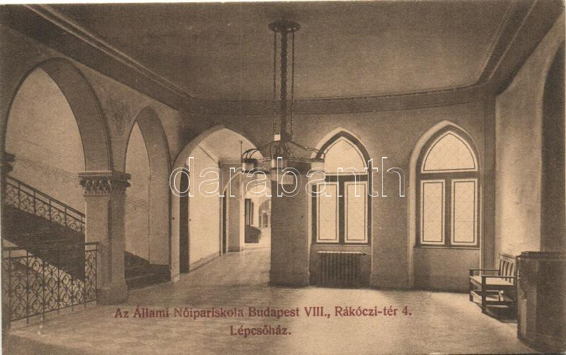 Budapest VIII. Rákóczi tér, Állami Nőipariskola, Lépcsőház https://www.darabanth.com/hu/265-Gyorsarveres/265.0/Kepeslapok/Magyarorszag~300059/Budapest-VIII-Rakoczi-ter-Allami-Noipariskola-Lepcsohaz~II1324939