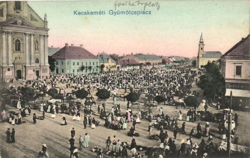 Leírás: Kecskemét, Gyümölcspiac, Sipos üzlete, Gárdi Imre felvétele, kiadja Komor Gyula (fl)