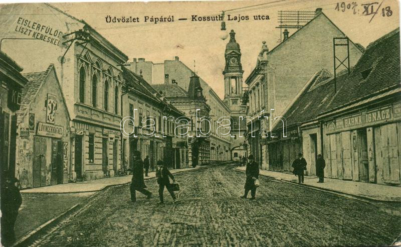 Pápa, Kossuth Lajos utca, Barna Ignácz, Eisler Fülöp, Saudek Miksa és ... https://www.darabanth.com/hu/265-Gyorsarveres/265.0/Kepeslapok/Magyarorszag~300059/Papa-Kossuth-Lajos-utca-Barna-Ignacz-Eisler-Fulop-Saudek-Miksa-es-Lovinger-Rafael-uzlet~II1327501
