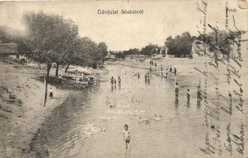 Leírás: Sóskút, patak, fürdőzők, kiadja Berkovits Károly (EB)