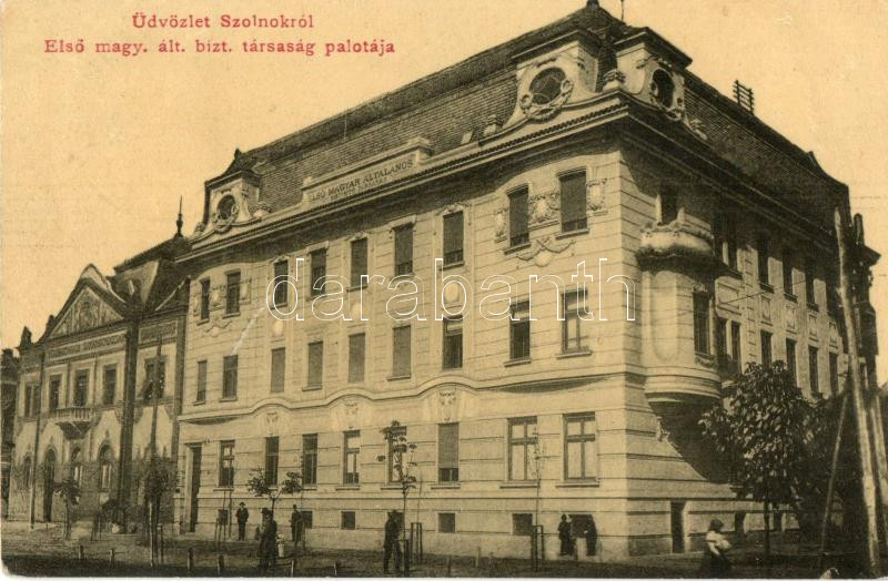 Szolnok, Első Magyar Általános Biztosító Társaság palotája (kopott sar... https://www.darabanth.com/hu/265-Gyorsarveres/265.0/Kepeslapok/Magyarorszag~300059/Szolnok-Elso-Magyar-Altalanos-Biztosito-Tarsasag-palotaja-kopott-sarkak-worn-edges~II1326313