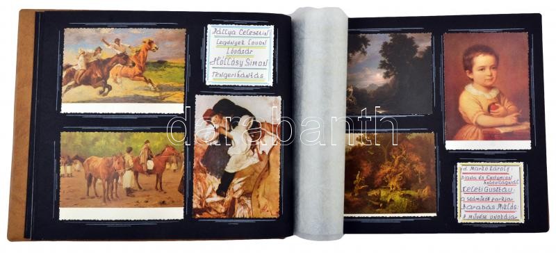 ~144 db MODERN, színes, motívum képeslap, krém színű albumba ragasztva, magyar művészeti alkotások, Szinyei Merse, Munkácsy, Székely Bertalan képeivel / ~144 modern, color motive postcards glued in cream color postcard album, Art motive cards works of Hungarian painters
