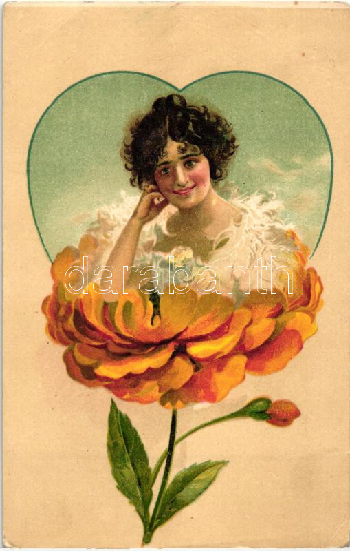 Lady in flower, love greeting card, litho (EK) https://www.darabanth.com/hu/265-Gyorsarveres/265.0/Kepeslapok/Muveszlapok~300099/Lady-in-flower-love-greeting-card-litho-EK~II1309010