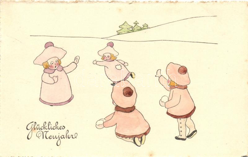 New Year, girls playing snowball, B.K.W.I. 2847-4. (EM) https://www.darabanth.com/hu/265-Gyorsarveres/265.0/Kepeslapok/Udvozlolapok-Unnepek~300064/New-Year-girls-playing-snowball-BKWI-2847-4-EM~II1324823