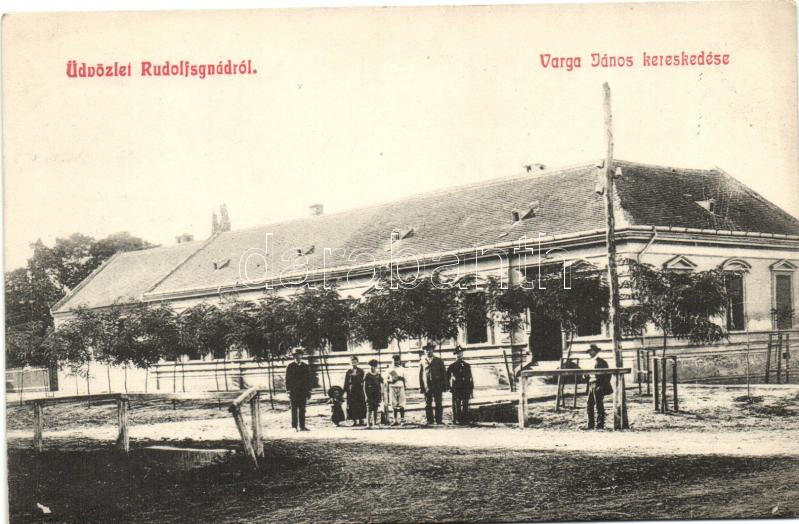 Rezsőháza, Rudolfsgnád, Knicanin; Varga János kereskedése / shop of Já... https://www.darabanth.com/hu/265-Gyorsarveres/265.0/Kepeslapok/Vajdasag~300035/Rezsohaza-Rudolfsgnad-Knicanin-Varga-Janos-kereskedese-shop-of-Janos-Varga~II1324978
