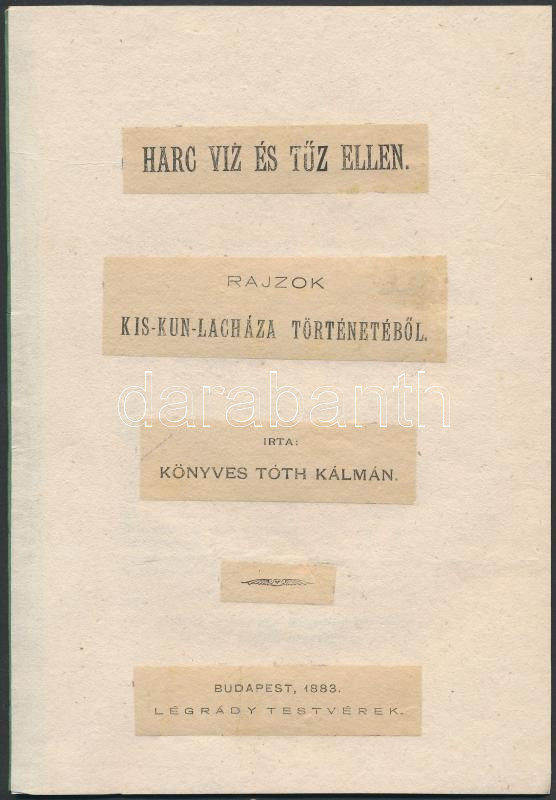 Leírás: Könyves Tóth Kálmán: Harc víz és tűz ellen - Rajzok Kiskunlacháza történetéből. Bp., 1883. Légrády. 26p. Eredeti címlap felhsználásával