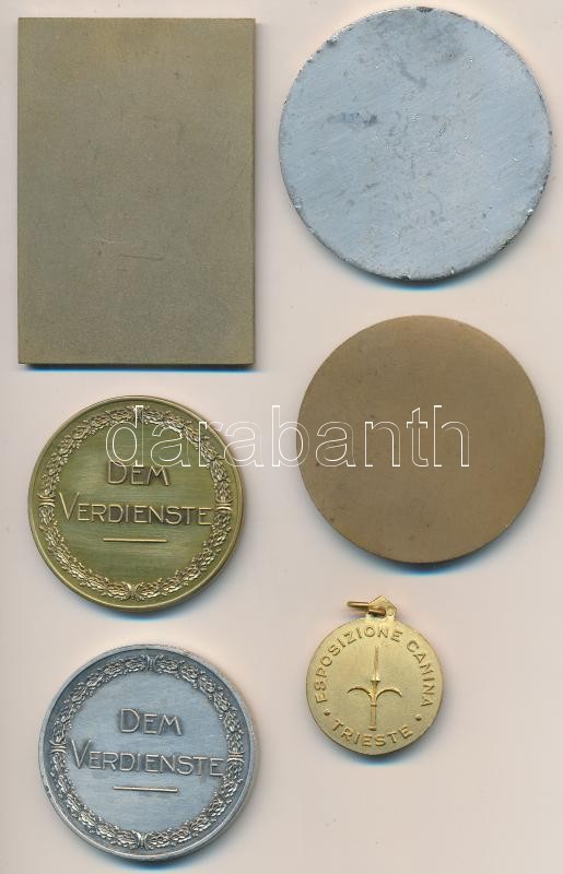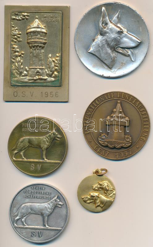 6db-os külföldi kutyakiállítási érem és plakett tétel T:2,2-