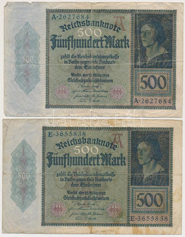 Leírás: Németország / Weimari Köztársaság 1922. 500M (2x) T:III,III-