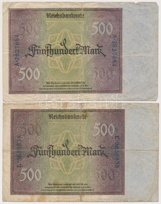 Germany / Weimar Republic 1922. 500 Mark (2x) C:F,VG