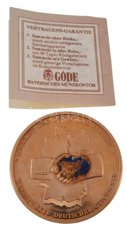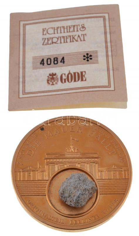 Németország 1990. "Berlini fal leomlásának emlékére" aranyozott tombak emlékérem a Berlini fal eredeti darabkájával, tanúsítvánnyal (50mm) T:PP ujjlenyomat