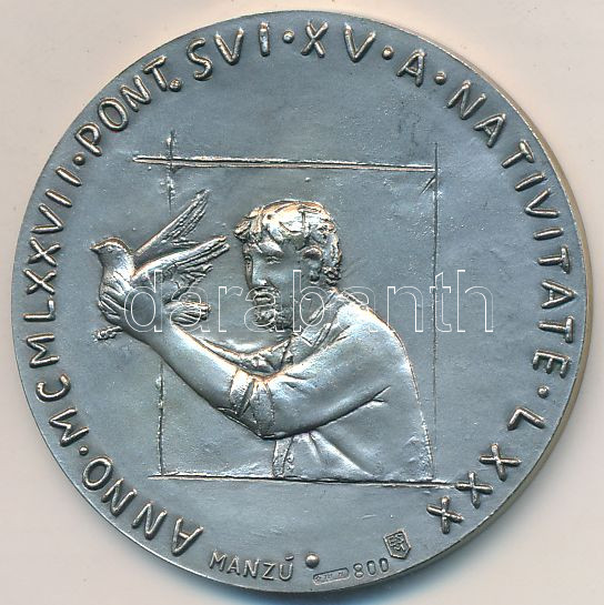 Vatikán 1977. "VI. Pál pápa" jelzett Ag emlékérem. Szign.: Manzú (36,8g/0.800/44mm) T:2