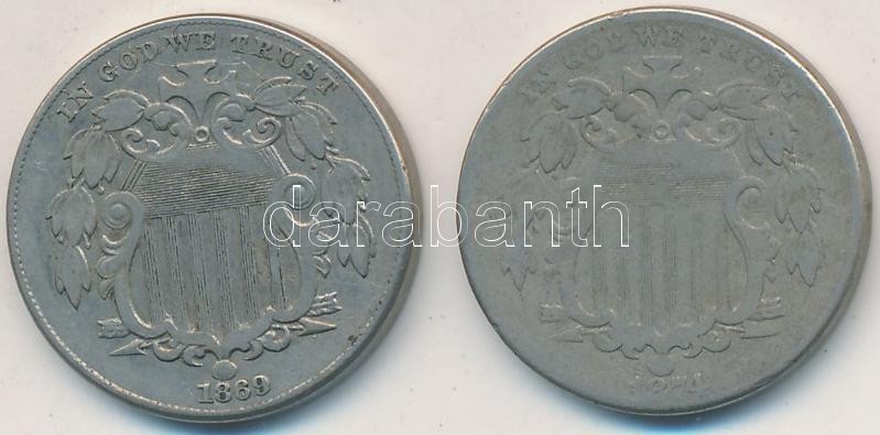 Leírás: Amerikai Egyesült Államok 1869-1874. 5c Cu-Ni "Shield" (2x) T:2-,3