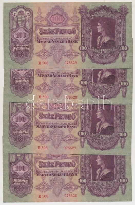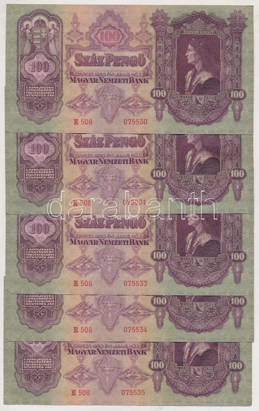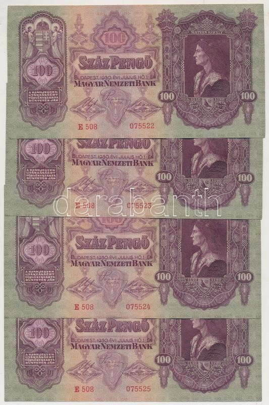 1930. 100P (13x) sorszámkövetők T:I-,II https://www.darabanth.com/hu/265-Gyorsarveres/265.0/Numizmatika/Magyar-bankjegyek~400007/1930-100P-13x-sorszamkovetok-TI-II~II1240548