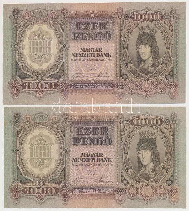 Adamo P21 https://www.darabanth.com/hu/265-Gyorsarveres/265.0/Numizmatika/Magyar-bankjegyek~400007/1943-1000P-2x-TII-III--Adamo-P21~II1322792