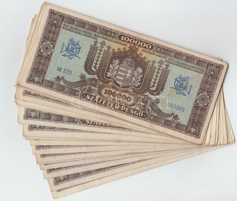 1945. 100.000P (30x) T:III https://www.darabanth.com/hu/265-Gyorsarveres/265.0/Numizmatika/Magyar-bankjegyek~400007/1945-100000P-30x-TIII~II1327317