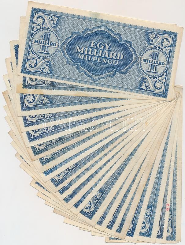 1946. 1.000.000.000MP (20x) T:II,III https://www.darabanth.com/hu/265-Gyorsarveres/265.0/Numizmatika/Magyar-bankjegyek~400007/1946-1000000000MP-20x-TII-III~II1327226