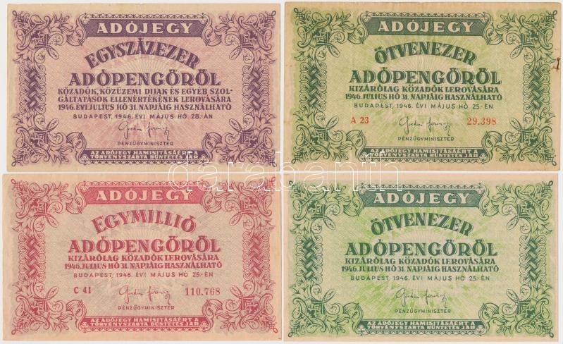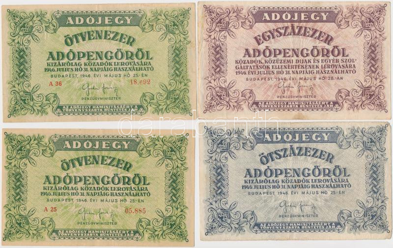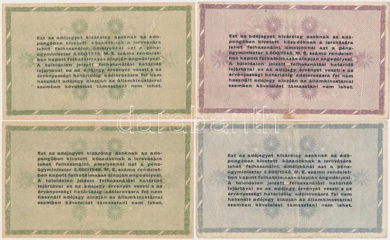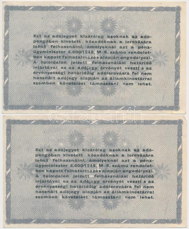 Leírás: 1946. 10db-os vegyes magyar adópengő bankjegy tétel, közte fordított címeres, sorozat- és sorszám nélküli is T:I-,II,III