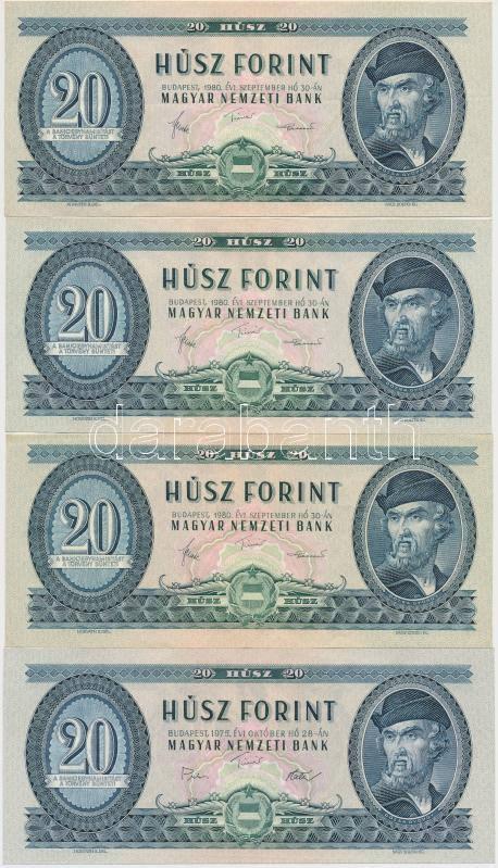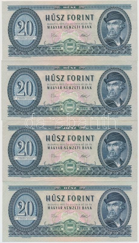 Leírás: 1975-1980. 20Ft (8x) T:II,II-,III mindegyiknél szép, ropogós papír