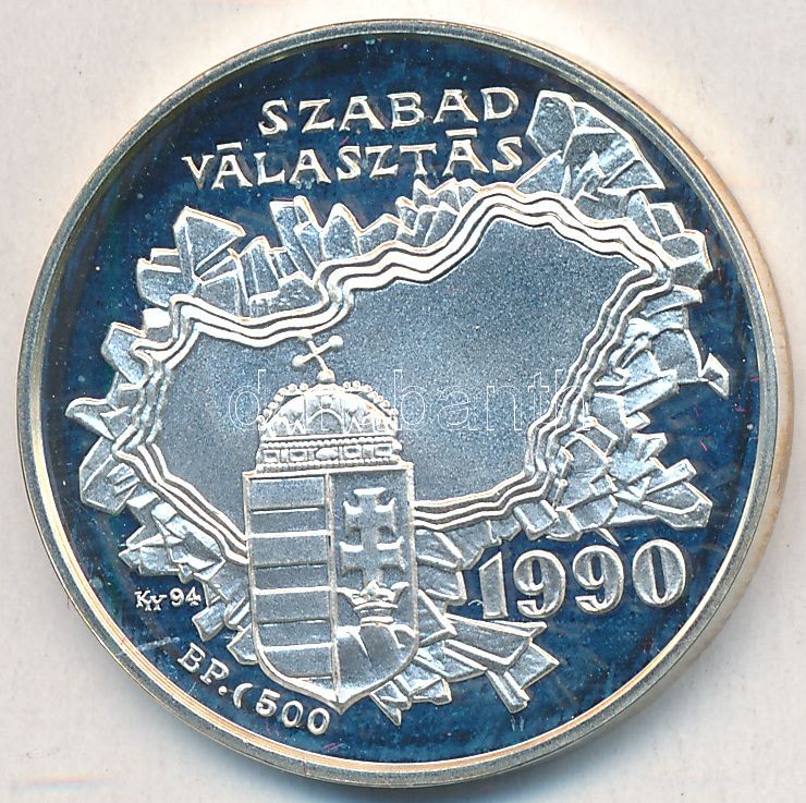 Leírás: Kiss György (1943-) 1994. "Dr. Antall József / Szabad Választás 1990" Ag emlékérem (10g/0.500/30mm) T:PP kis oxidáció