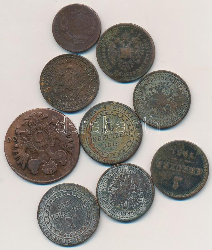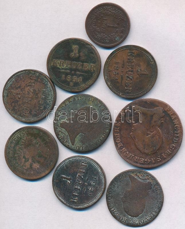 Leírás: 1800-1868. 9db-os krajcár tétel, magyar és osztrák verdejelűek T:vegyes