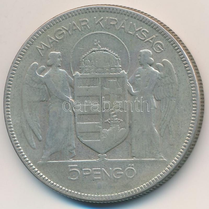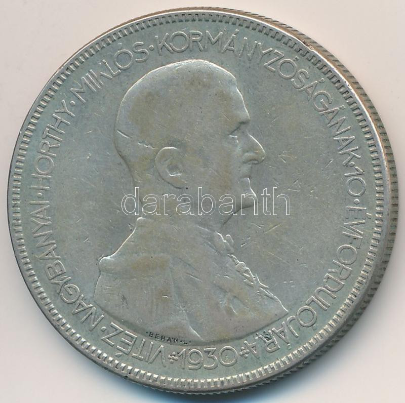 Leírás: 1930. 5P Ag "Horthy jobbra" T:3