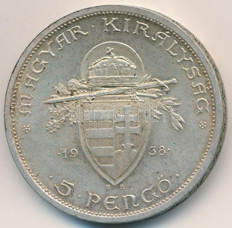 Leírás: 1938. 5P Ag "Szent István" T:2 patina