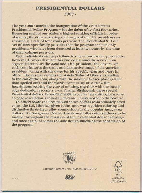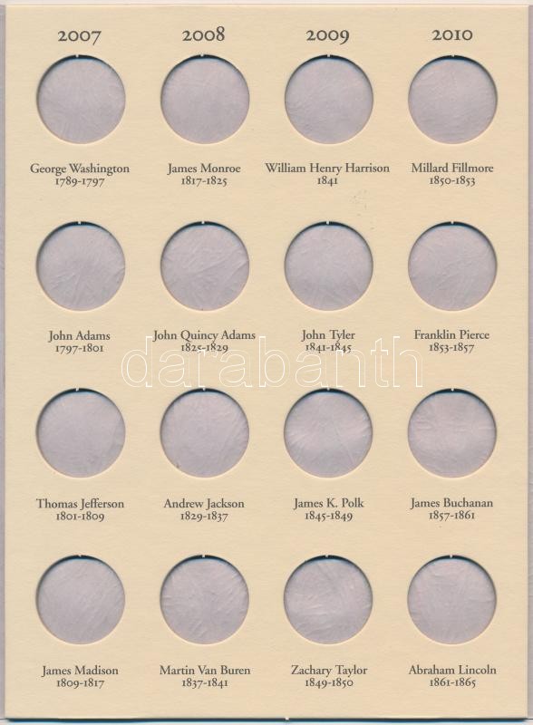 Amerikai Egyesült Államok "PRESIDENTIAL DOLLARS 2007-" 48 férőhelyes gyűjtői album használatlan állapotban