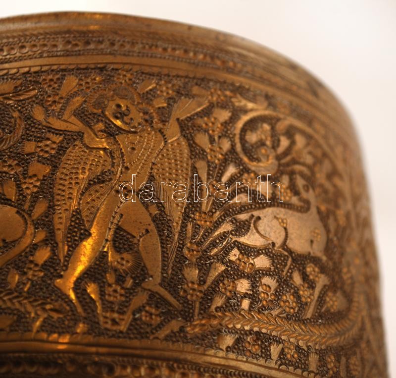 Leírás: Indiai motívumos, díszes réz kaspó, d: 12,5 cm