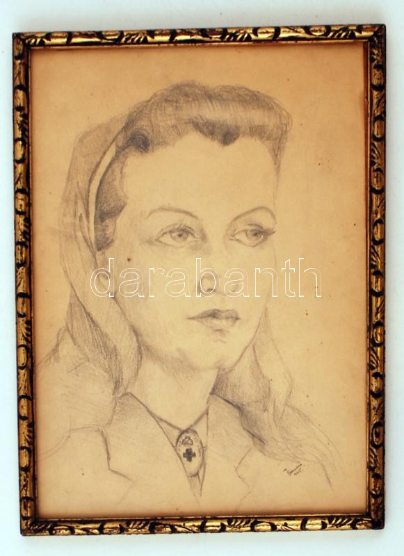 Bankó jelzéssel: Vöröskeresztes nővér 1945. Ceruza, papír, 30×21 cm https://www.darabanth.com/hu/266-Gyorsarveres/266.0/Festmeny-mutargy-papirregiseg-egyeb/Festmenyek-es-grafikak~1/Banko-jelzessel-Voroskeresztes-nover-1945-Ceruza-papir--30C39721-cm~II1331255