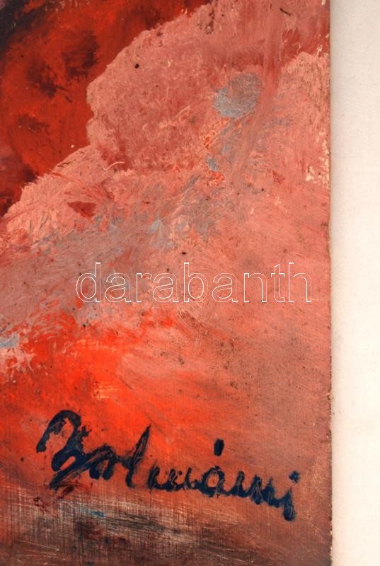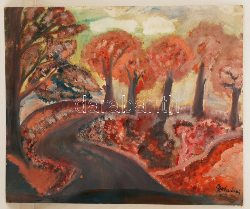 Leírás: Bolmányi jelzéssel: Fák az útnál. Olaj, farost, 50×60 cm