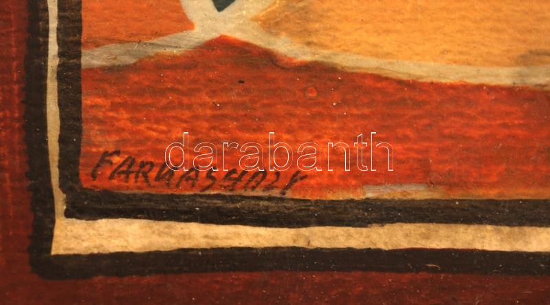Leírás: Farkasházy jelzéssel: Színek, formák. Vegyes technika, papír, üvegezett keretben, 18×11 cm