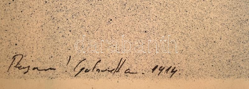 Leírás: Rainerné jelzéssel: Kutyák. Tempera, papír, üvegezett keretben, 20×14 cm