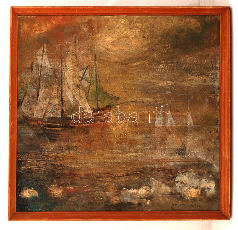 Leírás: Vajda jelzéssel: Vitorlások. Olaj, vászon, keretben, 46×46 cm