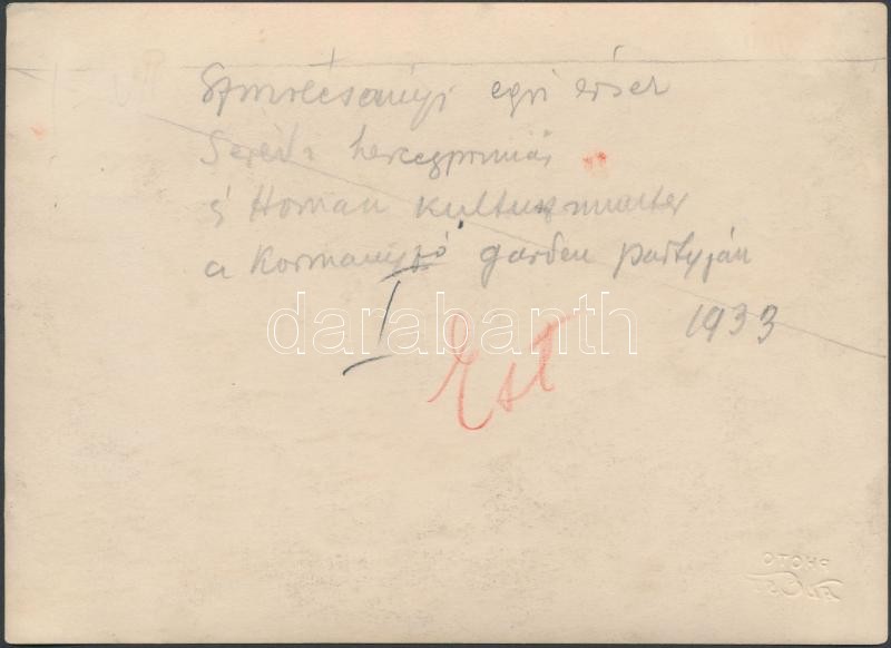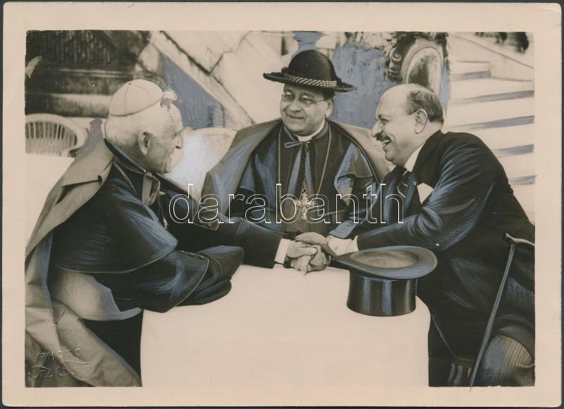 1933 Hóman Bálint kultuszminiszter, Serédi Jusztinián bíboros és Szmrecsányi Lajos egri érsek Horthy kormányzó garden partiján, Az Est c. újság fotója, 13x18cm