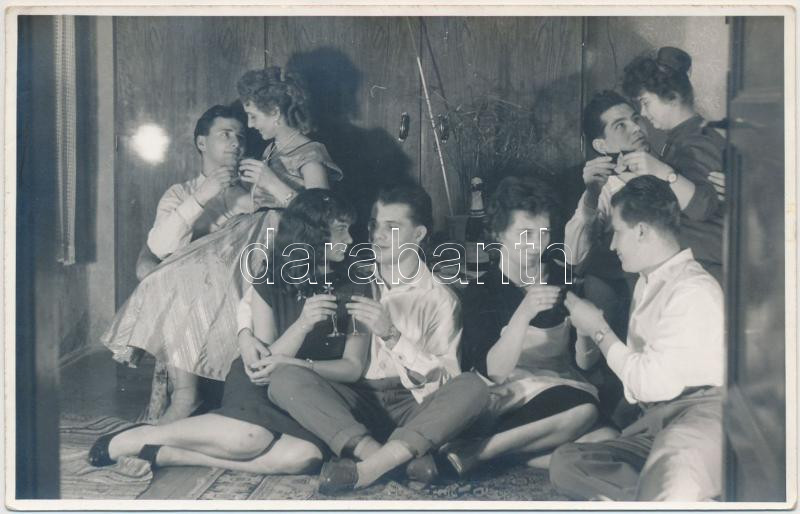 Leírás: 1959 Házibuli, jelzés nélküli vintage fotó Tiszavölgyi József (1909-?) hagyatékából, 9x14 cm