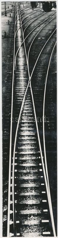 Leírás: 1966 Gyarmati Sándor: Sínek, aláírt vintage fotóművészeti alkotás, 24x6 cm