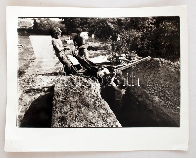 Leírás: 1985 Assai H. Péter: Kihantolás (Bakonyszentlászló), pecséttel jelzett vintage fotó, 18x27 cm-es képméret, 24x30 cm-es fotópapíron