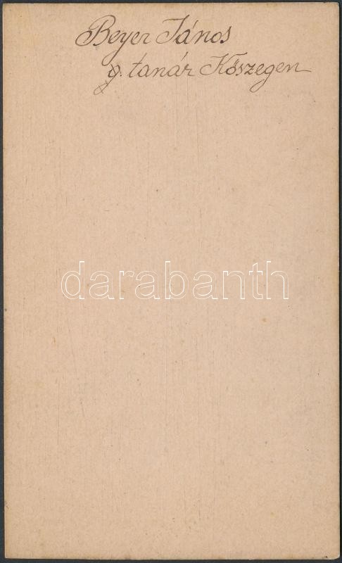 cca 1865 Beyer János kőszegi tanár, Péterfy Sándor (1841-1913) tanárán... https://www.darabanth.com/hu/266-Gyorsarveres/266.0/Festmeny-mutargy-papirregiseg-egyeb/Foto~18/cca-1865-Beyer-Janos-koszegi-tanar-Peterfy-Sandor-1841-1913-tanaranak-kemenyhatu-kabine~II1330397