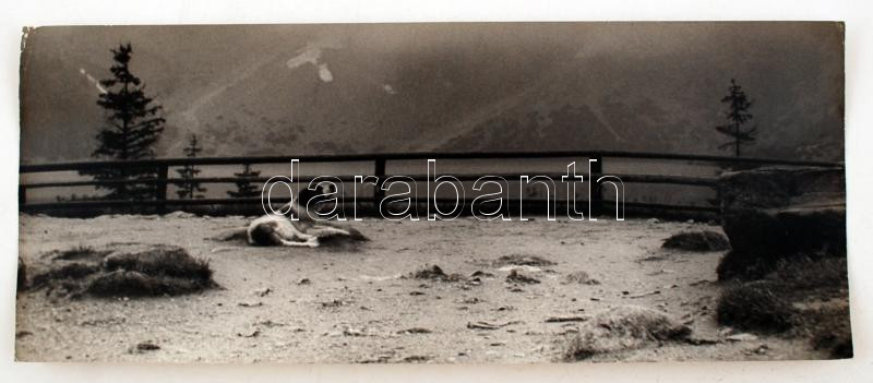 Leírás: cca 1956 Réti Pál: Az Alpok őre, pecséttel jelzett vintage fotóművészeti alkotás, sarkán törésvonal, 7x39 cm
